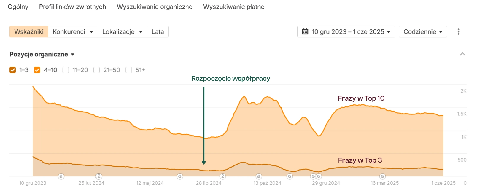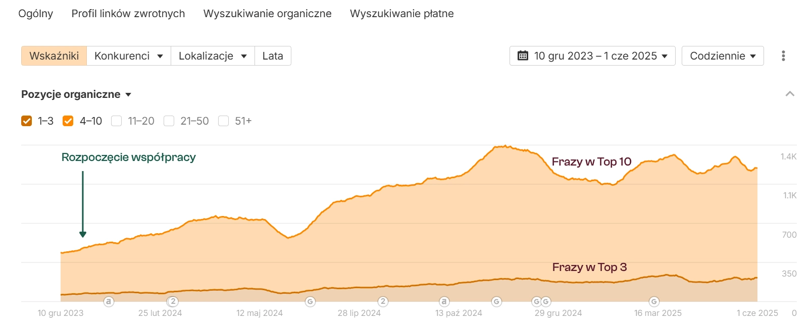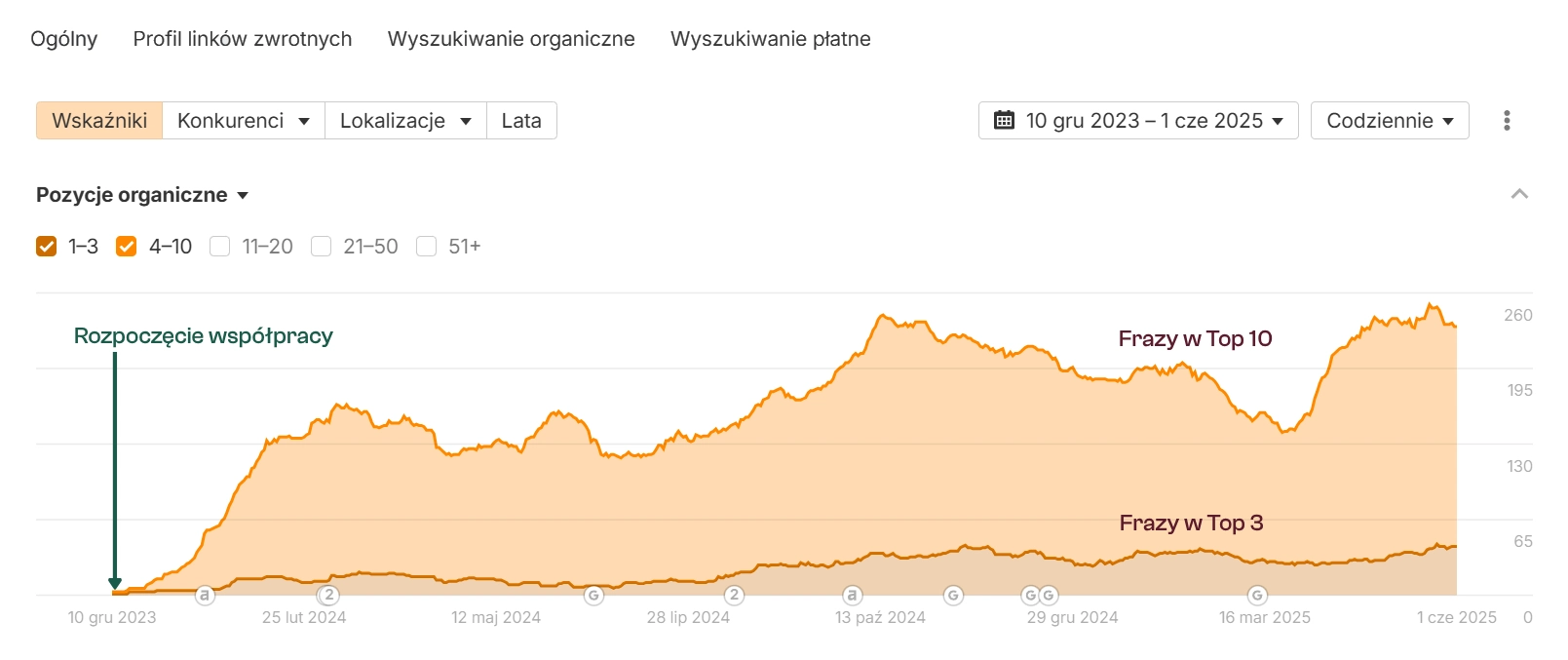 Nie czekasz rok na pierwsze rezultaty. Już po 2-3 miesiącach widzisz wzrost pozycji kluczowych fraz. Po 6 miesiącach - znaczący wzrost ruchu i sprzedaży.