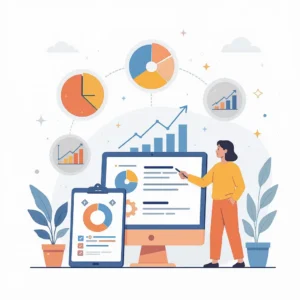 Przygotowujemy przejrzyste dashboardy w Google Data Studio pokazujące najważniejsze metryki: ruch organiczny, konwersje, pozycje fraz kluczowych i ROI z SEO.